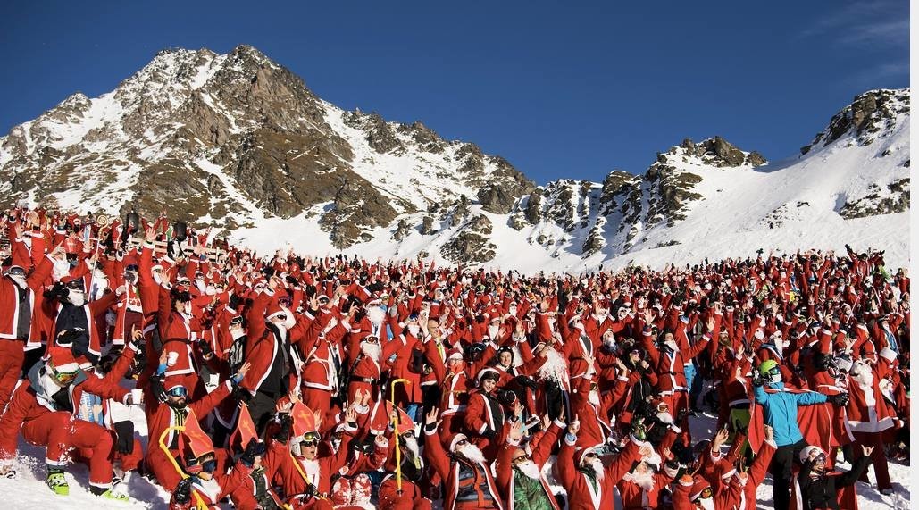 Такое увидишь не каждый день – 1 200 горнолыжников в костюмах Санта Клауса заполонили склоны Вербье в субботу 3 декабря.