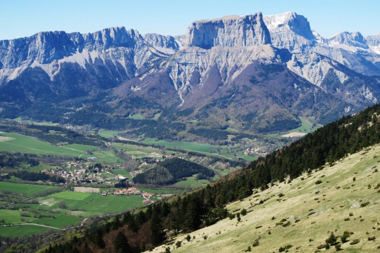 «Уникальная гора Мон-Эгюий, отделенная от массива Веркор, возвышается над всем регионом Триев, символом которого она является. Высота над уровнем моря всего 2086 метров. 26 июня 1492 года Антуан де Виль и его команда поднялись на нее, положив начало альпинизму. Первые фотографы спешили увековечить гордый силуэт...»