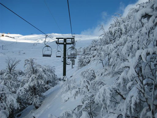 (до округленной станции, в центре). Наверху еще трудились три креселки и бугель (слева).