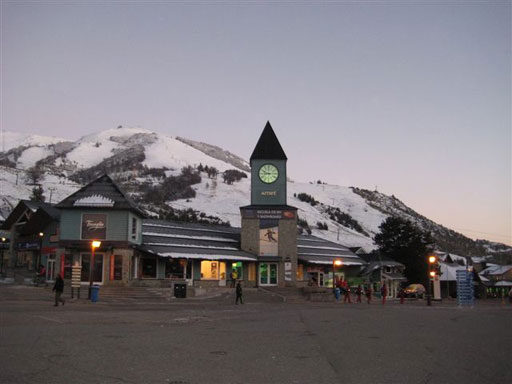 Главная площадь, у подъемников. Прямо (через поле для поло) здание нашего проката.