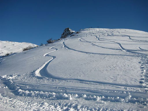 Левую половину склонов (по карте), освещенную солнцем никто не раскатывал.
