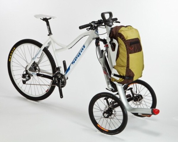 Любителей активного отдыха радуют и немецкие креативщики. Компания Bergmönch выпустила складной горный велосипед, совмещенный с рюкзаком. «Трансформация» занимает не более двух минут.