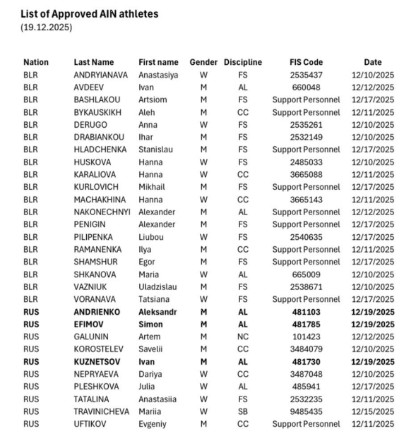 19 дек FIS обновила список российских спортсменов, которые получили нейтральный статус для выступления на турнирах под эгидой организации.