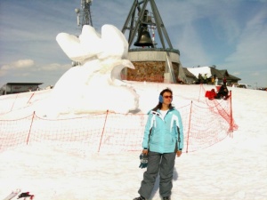 И вот мы уже выше облаков. Взору открывается красотища, высотища дух захватывает. Но я - королева лыж, подножье горы покорила и вершину возьму.