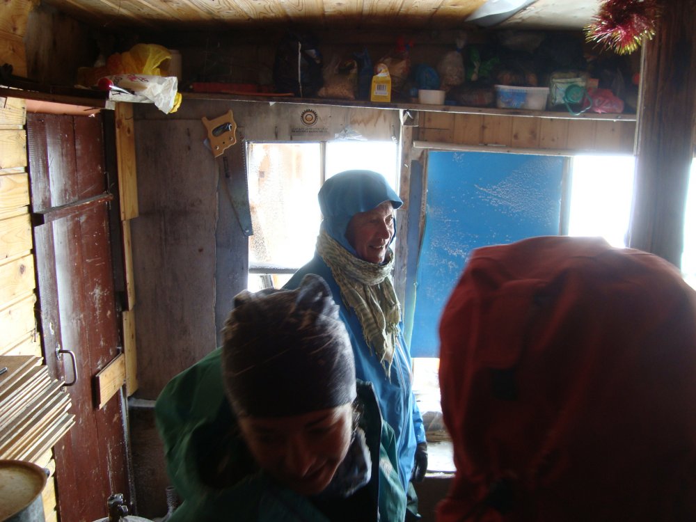 4.05. Ночью балок трясло ветром, как палатку на пьяном фестивале. Обмерзала дверь и наконец-то пригодились ледорубы — выколачивать из щелей лед, чтобы плотно притворить ее. Угу… Самое то в 3 часа утра: «В лесу раздавался топор дровосека!». Но более или менее выспался. Вообще жилье спартанское, но проблема не в этом. Люди, которое его делали, явно не для себя старались. Лежа на втором этаже нар, ощущаешь подъем такого же бедолаги на вторые нары в противоположном краю балка как трехбалльный шторм, а ворочанье нижнего соседа как пятибалльное землетрясение… Но это я так — побурчать занудливо))).