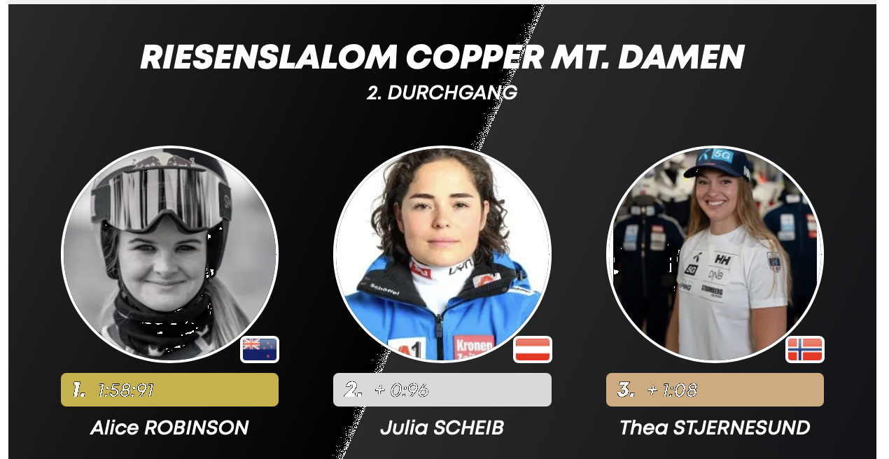 Теперь у 27-летней австрийки в начале сезона столько же подиумов Кубка мира, сколько она набрала за всю свою карьеру. Джулия призналась, что «условия очень отличаются от Зёльдена и не подходят ей, поэтому она ехала единственным способом, который она знала. Я толкалась, больше во втором заезде». Это позволило ей опередить Стьернесунд.