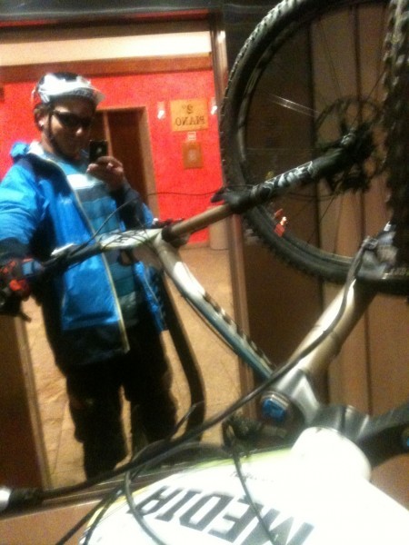 На следующий день решил проехать насколько этапов на время, селфи в лифте, на вопрос "куда ставить байк" в гостинице Планибель, мне ответили "а берите его с собой в номер".