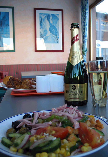 Потом мы обедали ;) эдак аристократично (но не пытайтесь повторить это - шампанское Henkell ужасно!)