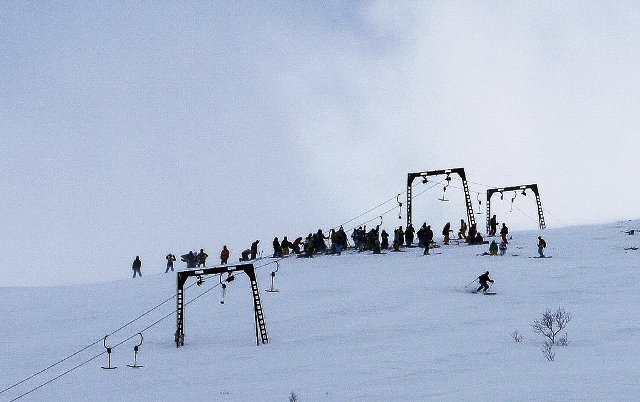 Несмотря на свою фрирайдерскую славу, склон "Кукисвумчорр" довольно демократичный - есть где катнуть детям и карверам. Хотя былые времена, когда я гонял на нем супер-гигант, и гора считалась спортивной далече. Хотя кто знает?