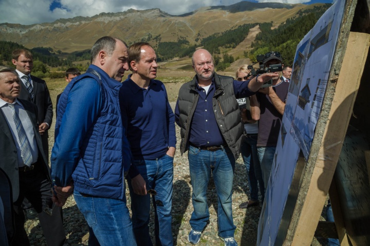 Министр по делам Северного Кавказа Лев Кузнецов, Глава Карачаево-Черкесии Рашид Темрезов осмотрели объекты, строительство которых вышло на финальную стадию. Самое масштабное строительство развернулось на Лунной поляне – втором поселке, который по проекту входит в состав курорта «Архыз».