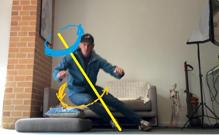 Это и есть - «начинать с таза». Безусловно, на практике нужно слегка согнуть ноги в коленях и слегка согнуться в пояснице вперед. Но любой сделает это интуитивно. Основной вклад в ускорение зада в сторону дивана в этом движении обеспечивают именно мышцы кора. Не стопы и не голени.