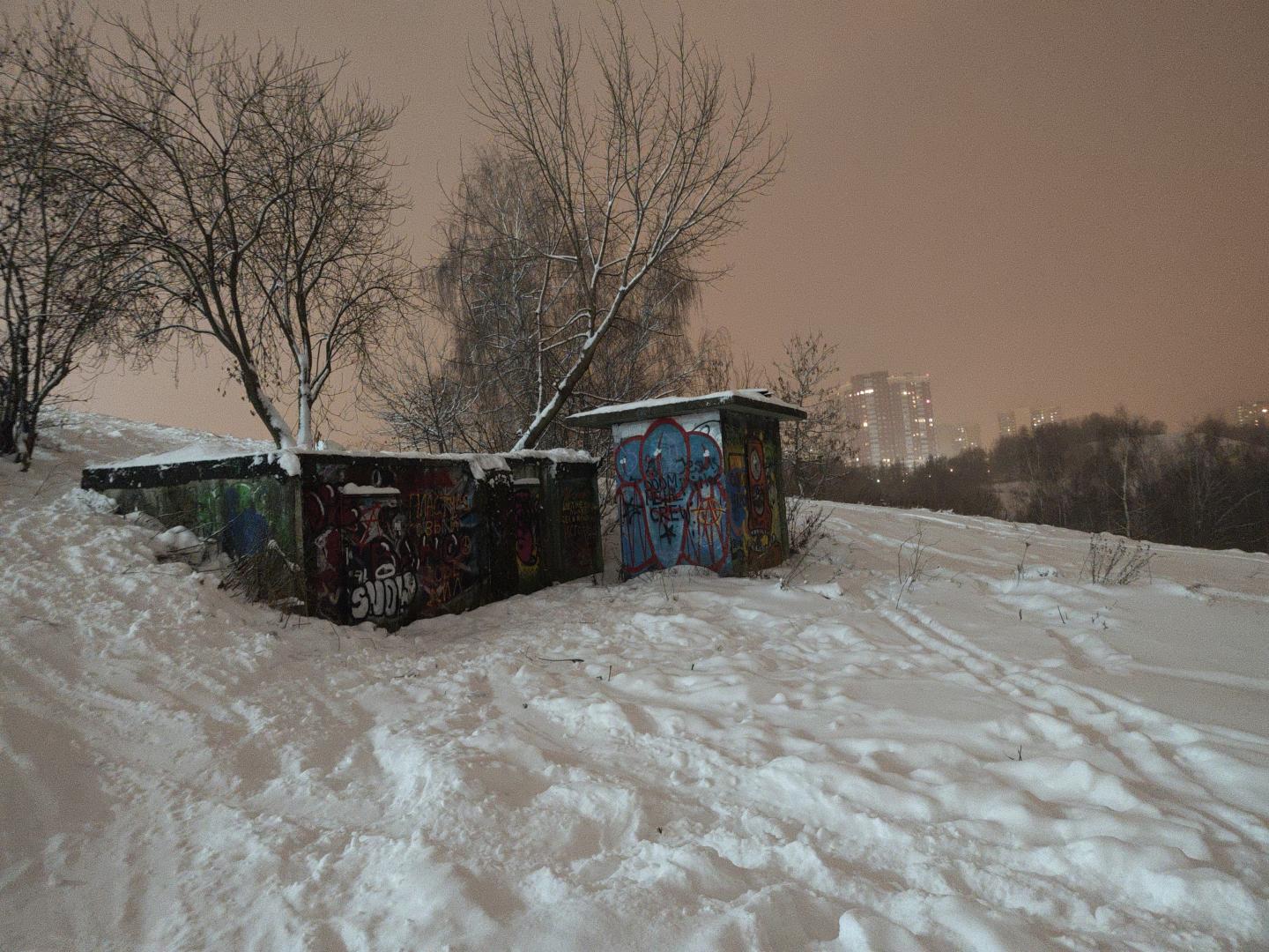 Потом по "просьбам", как говорили, служителей церкви трос укоротили и остался только подъем на верхушку, тот что с промежуточной опорой. Ну как по просьбам - угрожали перерезать его, если сами не откажемся от второго склона. мы каждый год осенью выходили на субботник и пропалывали наш склон, косили траву и вырубали мелкую поросль. Потом - это ж Москва, да еще Крылатское - нас, старых энтузиастов ГЛ, с горы прогнали уже окончательно. Я-то был тогда не старый. Все просто - отключили электричество да и все тут. Были какие-то разговоры про экологов, про заповедную зону и тд и тп. Ну это понятно. Москва, Крылатское... Не знаю, кто хотел все перераспределить и что там было, но сейчас склоны к храму дикие. Поросли и редких видов флоры не выросло, спустя лет 20 как минимум. Но, как кусочек относительно дикой природы - это да. Вот это я и наблюдал все давеча, с ностальгией. Бетонные сараи, в которых хранились моторы подъемников и другое оборудование, так и стоят, двери заварены. И расписаны граффити. Ну и все пожалуй, из ностальгии.