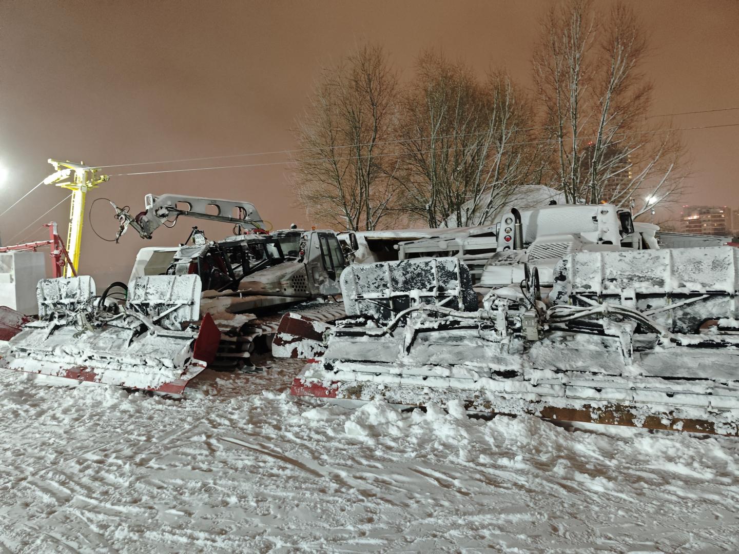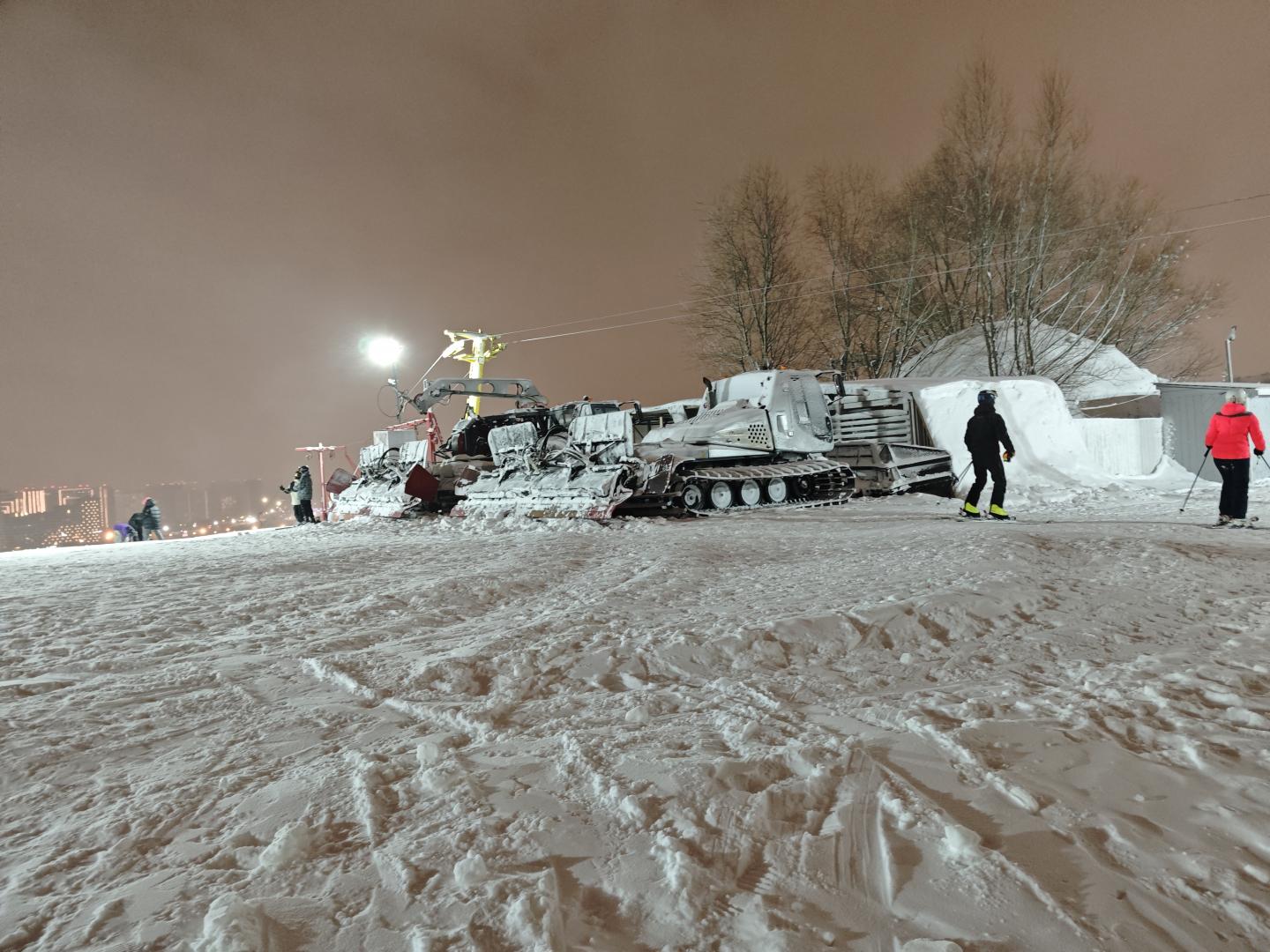 Стоянка теперь только платная, за территорией, через дорогу. А есть и у здания спортшколы, сказали, что бесплатная, но она очень маленькая - скорее не повезет, чем повезет, найти место. Вдоль дороги с верхушки к домам, сверху, какой-то ажиотаж на тюбинговой трассе. Но я туда не подходил. Зато на верхушке бросились в глаза два ратрака. Похоже, даже не б/у, а свежие. Люблю технику! Не очень разбираюсь в моделях, но мне они показались навороченными и с крутым обвесом. Так что, скажем, может Гудаури, да и Геш могли бы кусать ноготки. А тут - в Крылатском два! два первокласных ратрака! Это мск, детка... А может это мы застали некий обряд - и вот теперь, как поставили ратраки, этот холм поднимется, ну метров на 700 хотя бы.. Блин, не, ну мне просто завидно, за настоящие горы, простите... Неравенство блин, ну ладно...