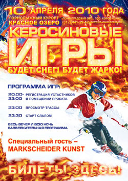 Керосиновые игры проводятся в Санкт-Петербурге ежегодно уже порядка 15 лет, из них около 8 лет на нашем курорте. Число участников соревнований – около 150 человек. Число посетителей курорта в ночь Керосиновых игр достигает 2 500 – 3 000 человек.