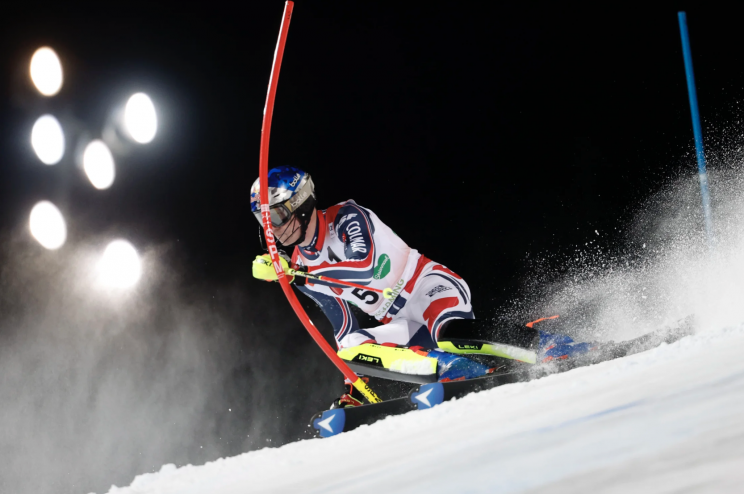 Погоня Мейара за двойным золотом Шладминга была прервана во втором секторе второго заезда. Кристофферсен выиграл последний слалом перед Играми и одержал первую победу в сезоне Кубка мира.