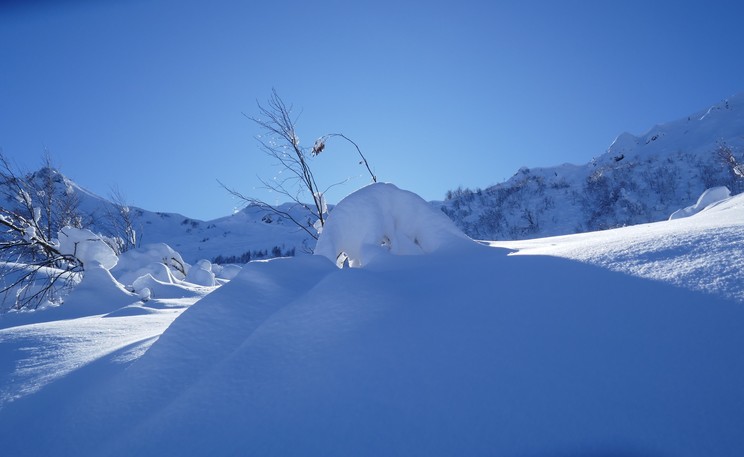 На прошлой неделе с Дочей долбили леса на Карусели с выходом на технологичку, леса , на Альпике с выходом к мосту и на автодорогу под Розой, и на Югах Розы с выходом к водопадам. Снежок был обалденный до 1200 нум, ниже малость подкисший. Все легкодоступное было раскатало, так что за хорошим снежком пришлось походить или повыходить