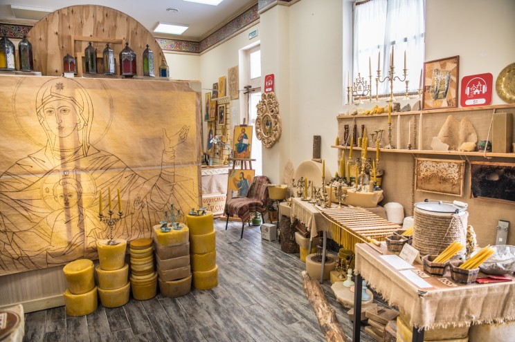 Тут же неподалеку расположился свечной заводик. Здесь можно понять, как делали свечи в Древней Руси. Для этого мастера использовали метод макания, раз за разом опуская фитиль в расплавленный воск. Процесс не быстрый, на изготовление свечей уходило до 2,5 часов.