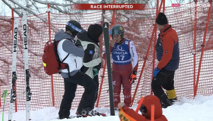 Субботнее зрелище было омрачено падением австрийки Магдалены Эггер, которую увезли на вертолете с серьезной травмой колена. Она врезалась в ворота и на большой скорости влетела в защитные сети. С окровавленным лицом она сначала встала и пыталась спуститься самстоятельно, но позже 24-летняя австрийка почувствовала боль в правой ноге, и была снята со склона вертолетом.