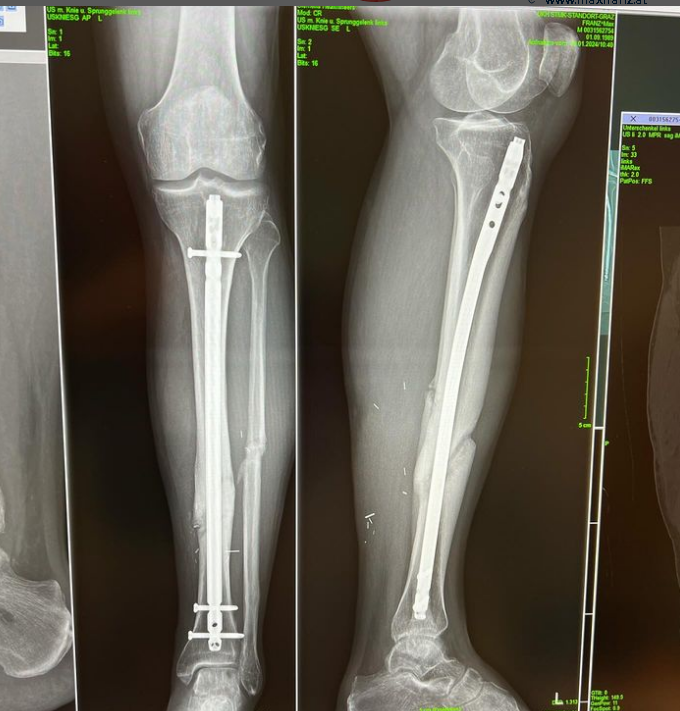 Была проведена успешная анатомическая реконструкция правого голеностопного сустава. Но повреждение нерва особенно затрудняет его возвращение. Заживление требует времени, много времени.