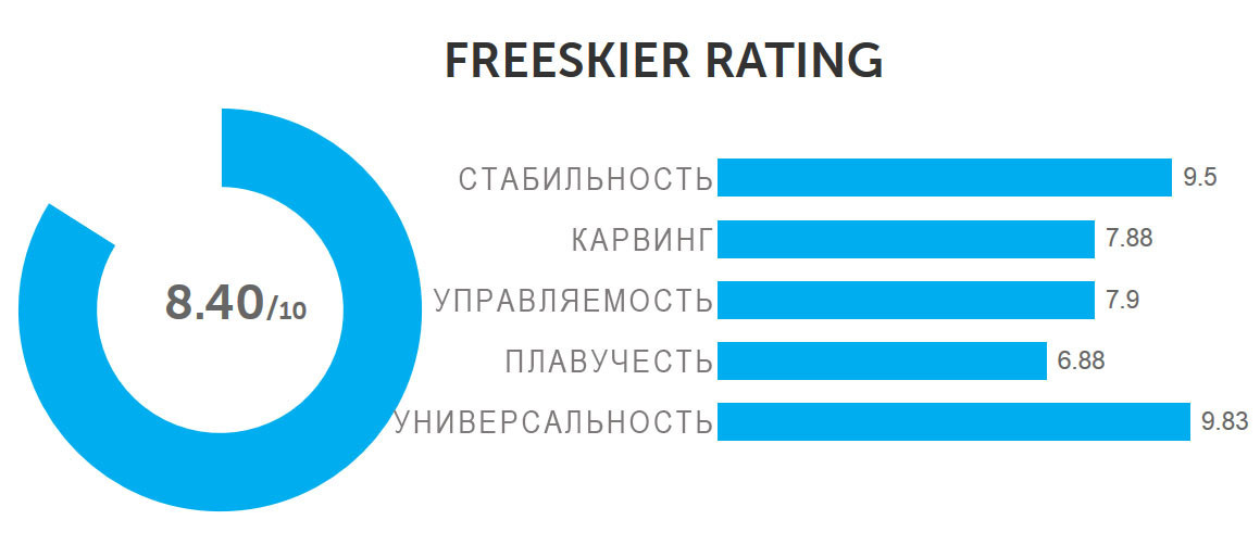 Тестеры отмечают Fischer Ranger 98 TI как мощный и вместе с тем легкий инструмент. Эти лыжи сделаны на основе фрезерованного деревянного сердечника, вес лыж снижен. Углеродное волокно в носке обеспечивает легкость и прочность, а титаналовые вставки под ботинками усиливают торсионную жесткость, что обеспечивает плавность хода на высоких скоростях. «Эти «плохие мальчики» супер быстрые и легкие», - написал один тестер. «Направь их вниз и удерживай, эти лыжи сами хотят отжигать.» Тем, кто ищет ультра-универсальный инструмент – просто обратите внимание на оценку в 9,66 баллов – обязательно рассматривайте Ranger 98 TI в качестве основного кандидата на покупку.