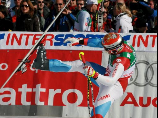 Первая победа в сезоне для швейцарцев! «Я дал лыже толчок, когда отстегнул ее, потому что хотел, чтобы она летела горизонтально вперед», — вспоминает он годы спустя. Но трюк не удался: «Я зацепился за переднюю обвязку, лыжа отлетела назад по высокой дуге. Поймать ее удалось только благодаря удаче».