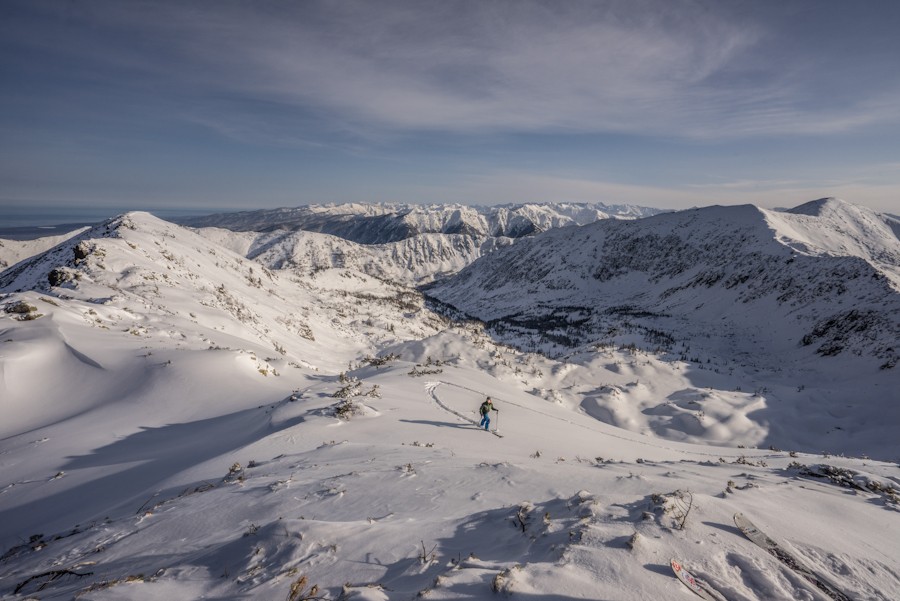 Примерно после нового года Байкал «встает» - покрывается льдом и перестает работать как большая грелка и снежная пушка. На Мамае наступает настоящая зима — снегопады реже и холодно, хотя поймать свой паудер можно и в это время.![]()