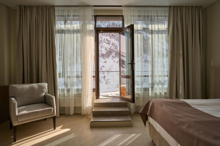 На третьем этаже сервис-центра гостей ждет горный отель «Калак» из 14 комфортных номеров с панорамными террасами. Также значительное расширение произошло в жилом фонде комплекса «Байрай Мамисон». К барнхаусам добавились 14 шале площадью 100 квадратных метров с двумя спальнями, гостиной и сауной.