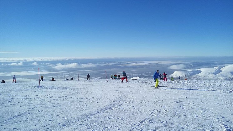 Сезон катания в Хибинах обычно с ноября до середины мая. Для Хибин не редкость сильные ветра, туманы и бураны. Лучшее время для катания - март, апрель, первые дни мая, поскольку до начала марта достаточно прохладно, туманно и дуют очень сильные ветра. Возможно, читая вышеизложенные строки вы заметили достаточно частое повторение следующих слов: "ветра", "туманы". Эти слова повторяются не случайно. Приезжая покататься в марте будьте готовы к возможным ветрам и туманам. Нам, к счастью, повезло в плане ветров. Во время нашего пребывания не было ни одного дня, чтобы закрывали подъемники из-за погодных условий. Но с туманами нам повезло не так сильно. Наверное, мы впервые поняли насколько печально было ежику из мультфильма "Ежик в тумане". ![]()