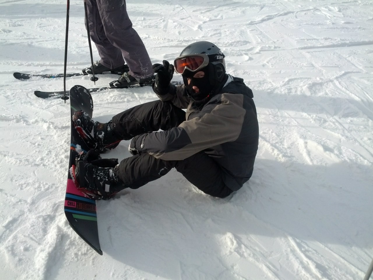 В декабре 2012 года мы с моим другом (он сноубордист) поменялись : я ему лыжи, а он мне сноуборд. И я сделал 6 спусков по синим трассам.
