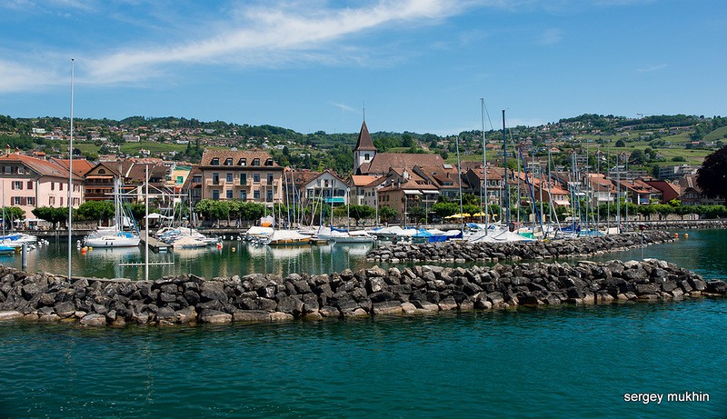 Сойдя с корабля на берег, идем пешком в сторону Веве и Монтре, над озером, вдоль виноградников,