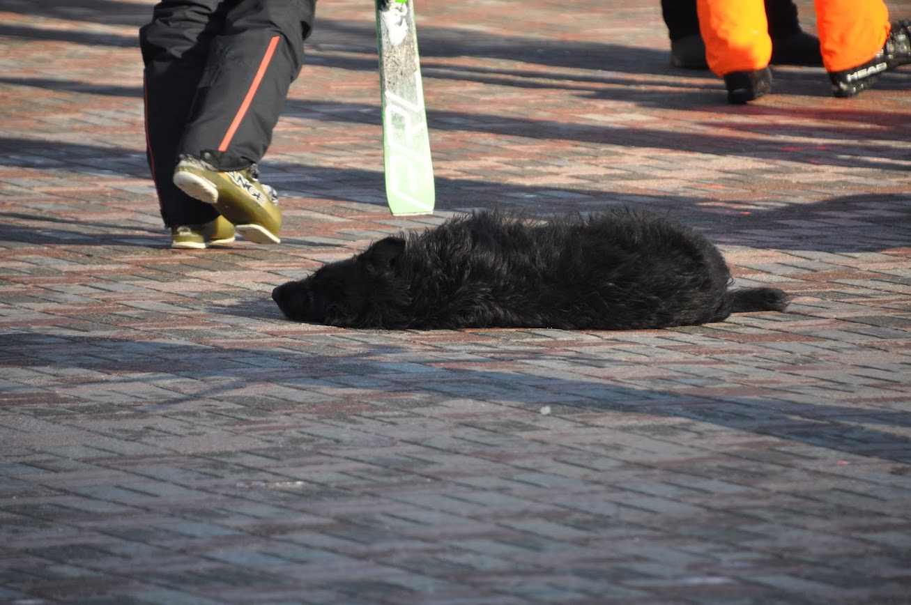 Катающихся на склонах много, особенно в те часы, когда мы как раз завершали утреннюю часть. На мой взгляд, бордеров гораздо больше, чем лыжников, да и бог бы с ними, если бы они себя не вели как и положено бордерам: сидение и лежание посреди трассы, чаще за ее перегибом, плохое (чаще очень плохое) владение спортивным инвентарем. Раз в нас въехал молодой человек, когда мы остановились передохнуть на краю трассы, он ехал прямо на нас, глядя нам в практически в глаза, видимо, не умел ни тормозить, ни поворачивать, остановился, просто упав за метр перед нами. Меня на трассе зацепил лыжник, который также, очевидно, не контролировал свою траекторию. Процентов 90, наверное, катаются плохо или очень плохо. Удивительно, но за пять дней я видел лишь дважды людей, которых я бы отнес к категории “эксперт”: это была лыжница на длинных лыжах с явно спусковой техникой и двое мужчин, мастерски владеющих современным карвингом.