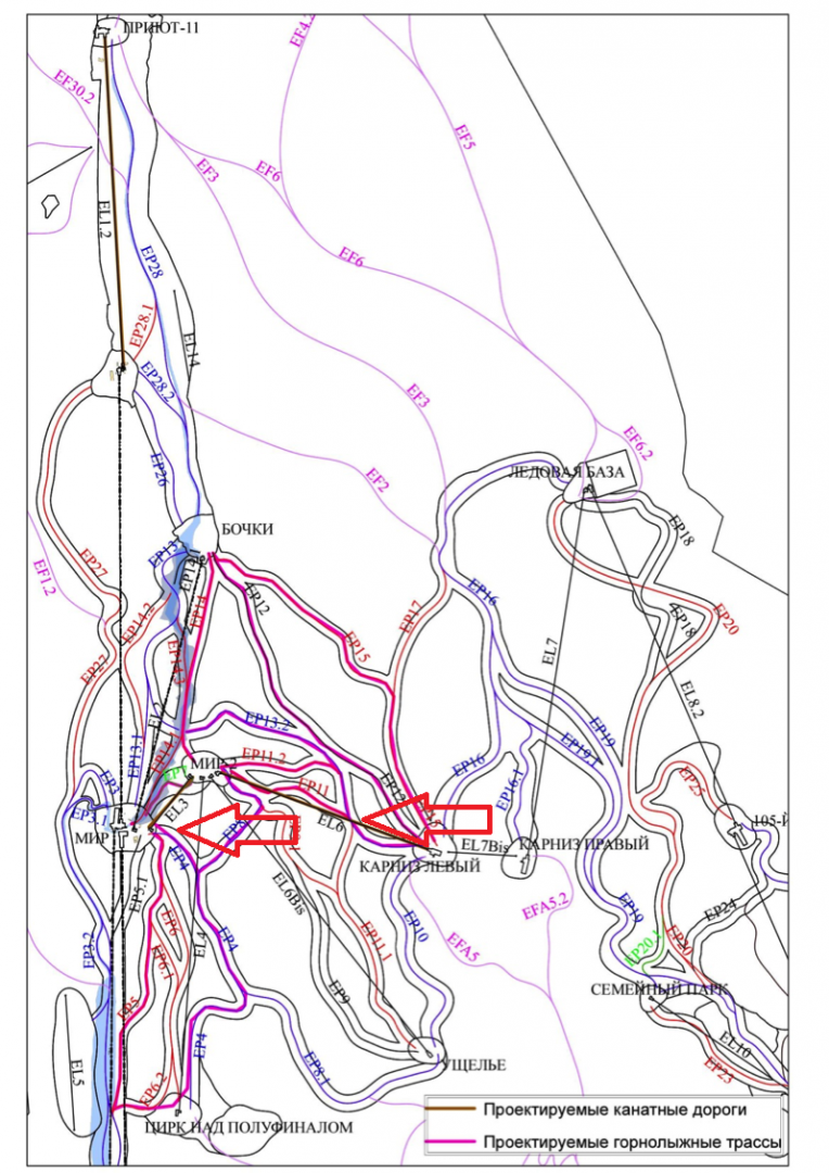Проектной документацией, получившей положительное заключение Главгосэкспертизы России, предусмотрено строительство двух пассажирских подвесных канатных дорог – EL3 и EL6 - для обслуживания горнолыжных трасс Всесезонного туристско-рекреационного комплекса «Эльбрус». Работы пройдут на южном склоне горы Эльбрус в Национальном парке «Приэльбрусье».