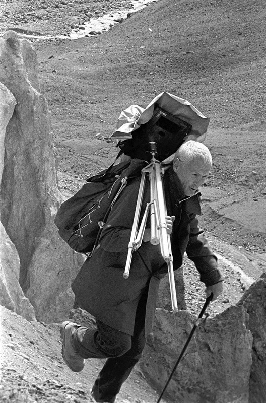 Снимал деревянными дореволюционными камерами, начиненными современной оптикой. Там, где можно было снимать не спеша, ставил штатив, накрывался тряпкой, и пока не утрясал кадр, от этого места не отходил. Менял эти камеры лишь на широкопленочные аппараты, когда ехал куда-нибудь в горы, где тяжело управляться с тяжелым штативом. Камера большого формата 13х18 имеет все уклоны, можно увидеть качество поверхности, есть возможность перспективных исправлений, введения в резкость отдельных планов. Работа с крупноформатным аппаратом ко многому обязывает, расширяет возможности. Начинаешь заниматься действительно фотографией. Вырабатывается правильное отношение.