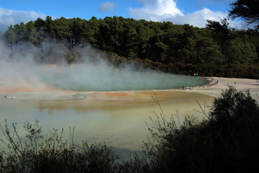 Однако полдня пути и можно попасть в Роторуа. Тоже унылая деревня, но там готовят божественный фейхуёвый фреш! И в ее окрестностях мини-Камчатка с ее гейзерами и фумаролками.