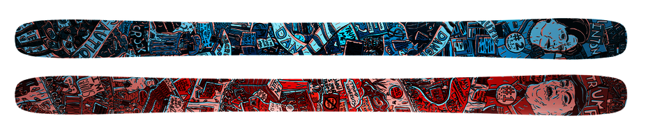 Им повезло договориться с Джейми Тамом (Jamie Tam), местным художником-графиком, чтобы тот оформил дизайн лыж. И, как можно убедиться воочию, он не сдерживал полет своей фантазии, включив различные оговорки и «мутные» высказывания героев дизайна.