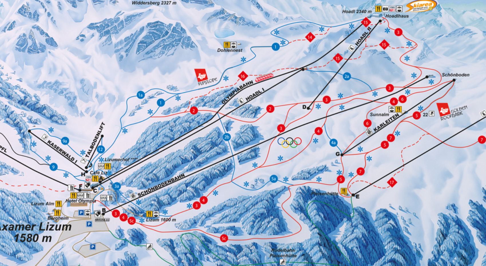 Горнолыжный курорт Axamer Lizum находится в 21 минуте езды на автомобиле от столицы Тироля Инсбрука и примерно в 8 минутах от города Аксамс. Курорт предлагает более 40 км трасс на высоте от 1540 до 2340 метров. Благодаря географическому положению и множеству снежных пушек зимний сезон длится здесь с ноября по апрель. Кроме подготовленных спусков есть 6 маршрутов для фрирайдеров и ски-туристов. Дети и начинающие найдут множество красивых тренировочных склонов, а любители фристайла - парк развлечений Golden Roof.