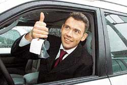 А для чемпиона в лыжном дуатлоне Жени Дементьева президентский джип вообще первая машина в жизни.