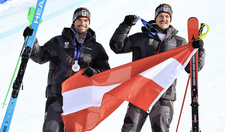 Серебро досталось сразу двум командам - Австрии (Мануэль Феллер в паре с Винсентом Крихмайром) и Швейцарии (Марко Одерматт и Лоик Майер).