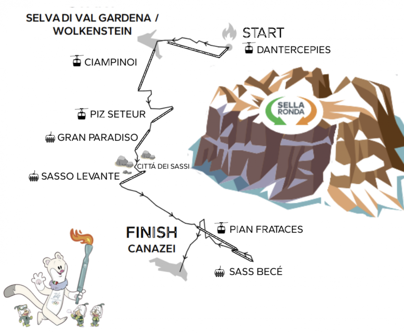 Проект «Olympic Flame/Олимпийский огонь» на склонах Sellaronda поддерживает компания Dolomiti Superski благодаря сотрудничеству с компаниями, управляющими подъемниками курортов: Кортина д’Ампеццо, Predazzo и Tesero в Валь-ди-Фьемме, а также Anterselva в районе Кронплац.