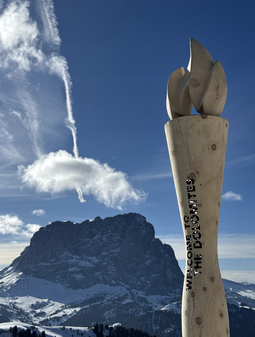 Затем огонь поднимется на верхнюю станцию канатной дороги Dantercepies, над Selva di Val Gardena, где будет торжественно открыта копия Олимпийского факела. Она изготовлена из швейцарской сосны, символизирует художественное мастерство региона и служит напоминанием об этом событии мирового значения.