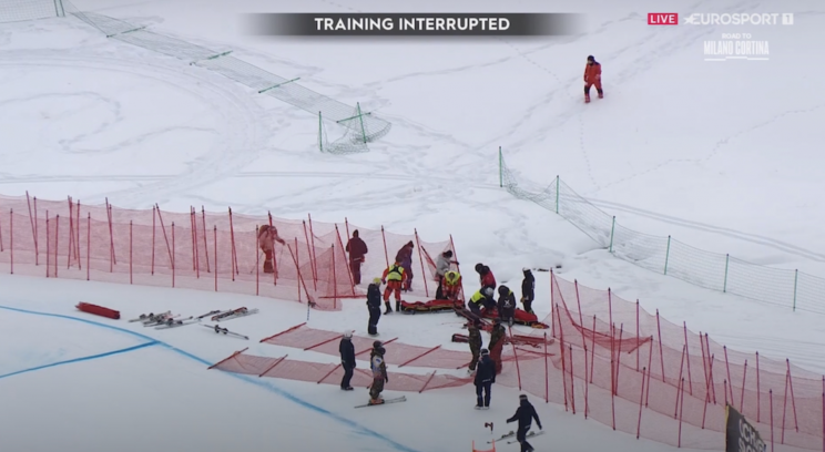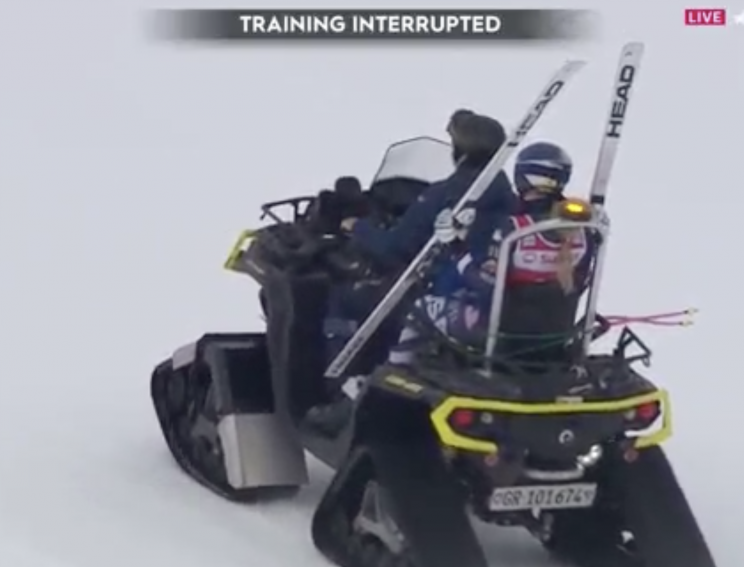 Линдси Вонн, которая стартовала после Гизин, остановили желтым флагом. Американке пришлось подниматься обратно на снегоходе и делать перестартовку.