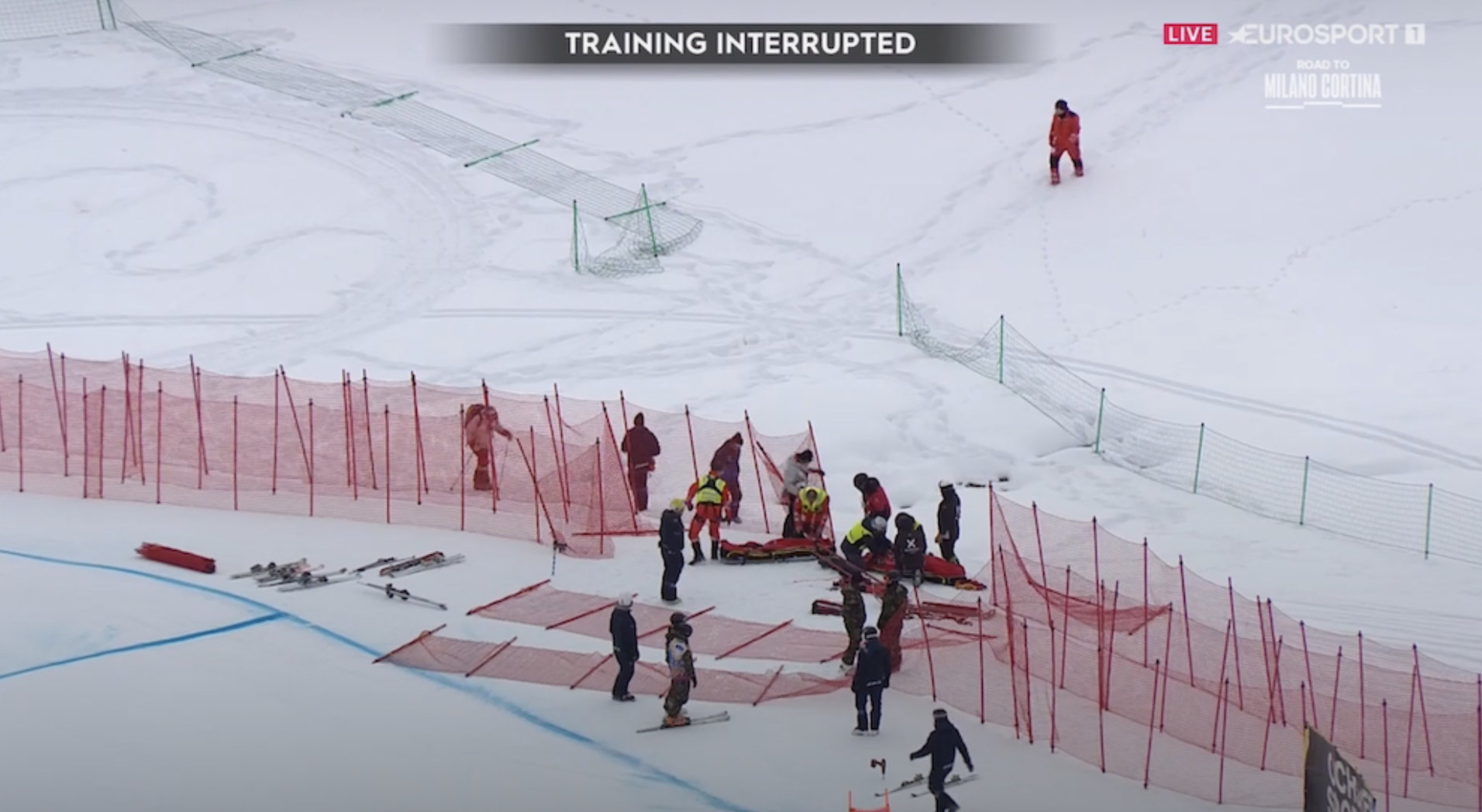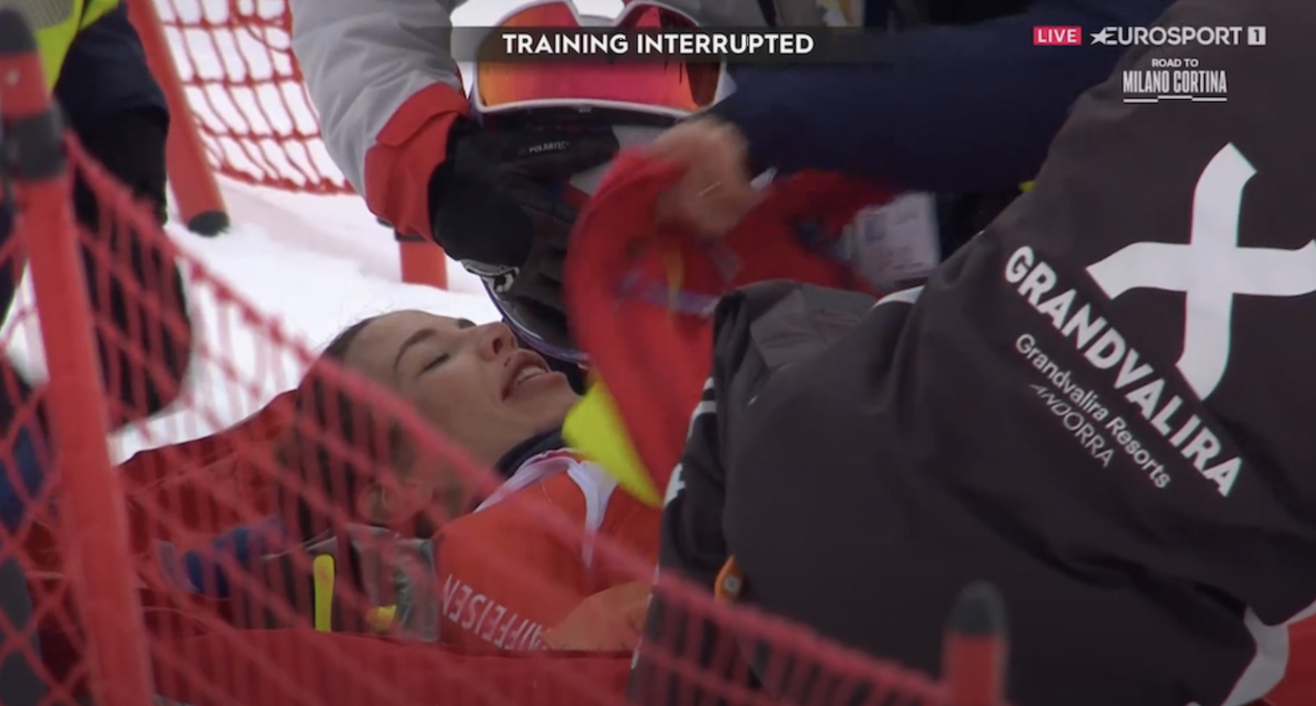 Олимпийская чемпионка в комбинации 2018 и 2022 годов после компрессии в нижней части трассы пролетела первую сетку и остановилась во второй. Гизин лежала на трассе около 30 минут, прежде чем ее эвакуировали вертолетом в ближайшую больницу, где были обнаружены травмы шейного отдела позвоночника, правого запястья и левого колена.