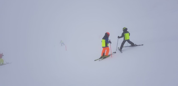 Одновременно с нами на леднике в эти выходные тренировались юниоры и некоторые горнолыжные школы из разных стран. Был полный Интернационал. Италия, Австрия, Германия, Словения, Россия, Украина, Франция - это только те, чью форму я успела поразглядывать за время долгого, веселого ожидания в очередях на подъемник.