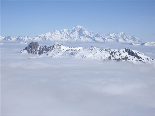 Величественный Монблан (скальный с Курмайорской стороны Италии). На переднем плане - скалы Куршевеля со знакомым "пальцем".