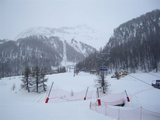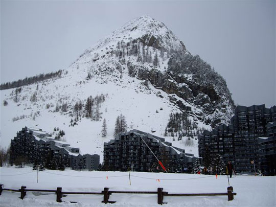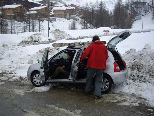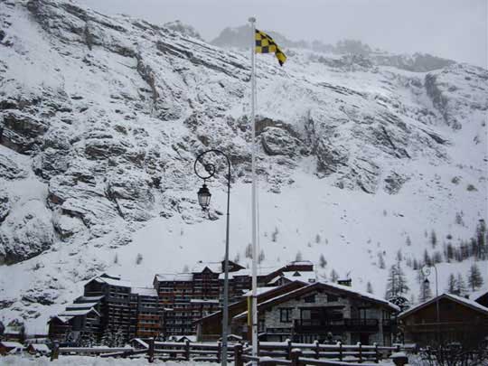 Выспавшись в "экологических" условиях, двинулись на авто в горы. Sainte Foy расположен на дороге из Бург де Сан Мориса в Валь д'Изер. По дороге был указатель на Ля Туиль, оказалось, это двойник итальянского курорта, хотя поворот на Ля Росьер (одна зона катания с Ля Туилем) мы тоже проезжали - все почти рядом.