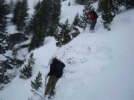 Подъемники начали периодически останавливать. На укатанных склонах однодневного снега откровенно было недостаточно. Решили заняться лесным катанием.