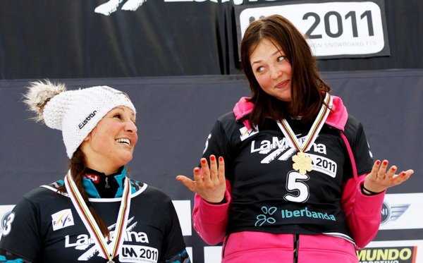 Это ЧМ 2011 года. У Алены Заварзиной золото, и нее – серебро. А в 2015 году она, наконец, выиграла Чемпионат мира в параллельном гиганте.