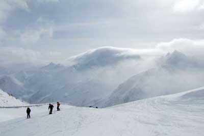 При спуске в белом мраке нашему мужеству порой приходил конец. Девчонки садились на снег и говорили: «Делайте, что хотите, вызывайте спасателей, мы больше никуда не поедем...» Но, отдышавшись и успокоившись, протерев очки от облепившего голову снега, с новыми силами спускались вниз. И так, пока не начинало темнеть. Счастливые, довольные и уставшие, возвращались в гостиницу... Днем питались в кафешках на горе, грелись у каминов, пили чай и снова в бой, иначе это назвать было сложно. На 4-й день погода прояснилась, и мы начали испытывать при спуске большое и приятное чувство - кайф. Наконец, стали использовать купленную фотопленку и забивать мегабайты карт памяти невиданными ранее видами гор.