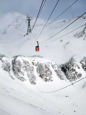 Местные на лыжах обычно катаются в марте, когда весеннее солнышко пригревает сильно, а на верху девчонки катаются в купальниках. К этому времени снегу заметно подсыпает, что исключает порчу лыж об камни. Рядом с гостиницей построено много частных гостиниц и на площади перед ними местные умельцы «толкают» продукцию своего агропрома и винпрома, так же много и дешевых и хорошо вязаных вещей, коих мы набрали на подарки.