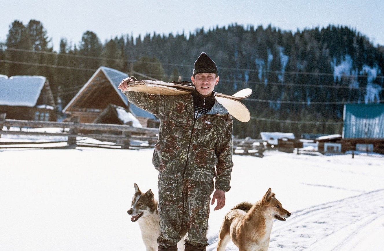 Самые ранние из известных прообразов лыж были найдены в России, и их появление относят к 8 000 годам до нашего времени. Мы прибыли в эти края, чтобы попытаться прикоснуться к древним лыжным традициям. Первая же деталь, которая бросилась нам в глаза еще на подлете, были лыжные следы. Лопасти еще замедляли свой бег, а у соседнего забора уже выстроилась толпа местных наблюдателей от мала до велика. За их спинами бегали лайки, резвились в снегу дети, а в округе можно было увидеть лошадей, коров и стога сена. Думаю, что увиденная нами картина мало отличалась от того, что здесь было столетие назад. Как только вертолет оставил нас и улетел на базу, к нам подошел парень, улыбнулся и протянул мне руку для крепкого рукопожатия. Это был Виталий.